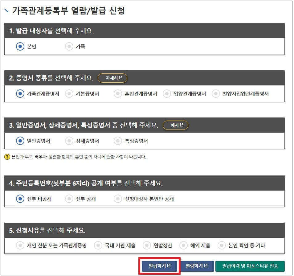 5. 가족관계증명서 발급하기