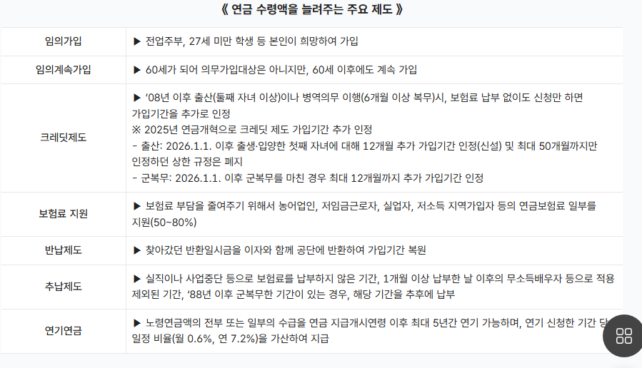 10년을 채우지 못한 경우에도 제도를 활용하면 가입기간을 늘릴 수 있습니다.