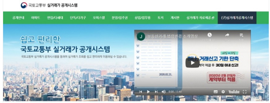 먼저 국토교통부 실거래가 공개시스템 사이트에 접속해 주시기 바랍니다.