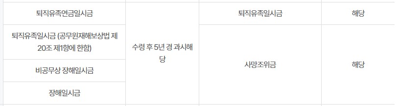 다만 장애일시금, 비공무상 장애일시금, 퇴직유족일시금, 퇴직유족연금 일시금의 경우 수령후 5년이 경과한 경우에는 신청이 가능합니다.