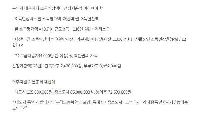 - 가구 유형(단독·부부)에 따라 기준 상이