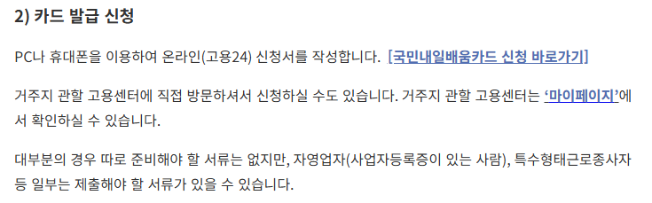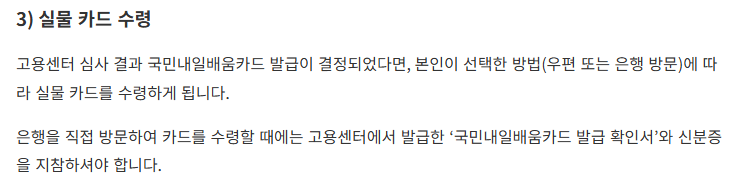 - 카드 수령 후 고용24에서 과정 등록