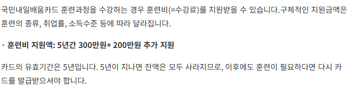 - 고용노동부 주관 직업능력개발 지원 제도