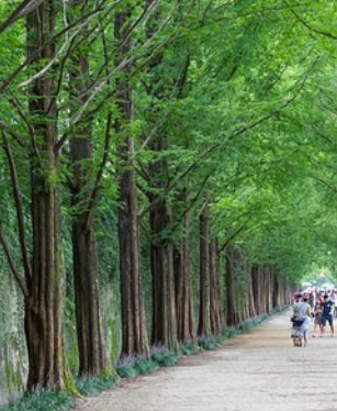 BTS의 RM이 방문하여 더욱 유명해진 이곳은 1972년에 조성되어 지역 주민들의 보존 운동 덕분에 오늘날까지 잘 유지되고 있습니다. 청량한 길거리를 걸으며 자연을 만끽할 수 있으며, 가로수길을 따라 걷다 보면 스트레스가 해소되는 느낌을 받을 수 있습니다.