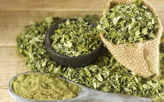 보통은 잎을 건조하여 분말로 많이 섭취합니다. 분말 하루 섭취량은 1~2g 정도이며, 티스푼으로 한 스푼 정도의 양을 드시면 됩니다. 물에다가 썩어서 드시거나 요거트에 같이 드셔도 좋습니다.