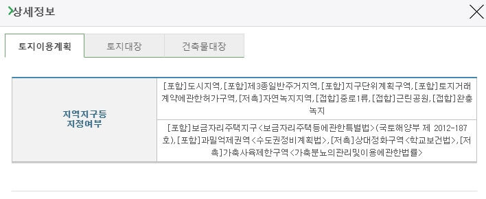 상세정보에서 전산공부를 클릭하면 토지대장, 토지이용계획, 건축물대장 자료를 볼 수 있습니다.