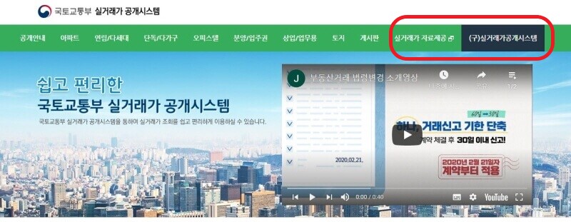 국토교통부 실거래가 공개시스템 바로가기