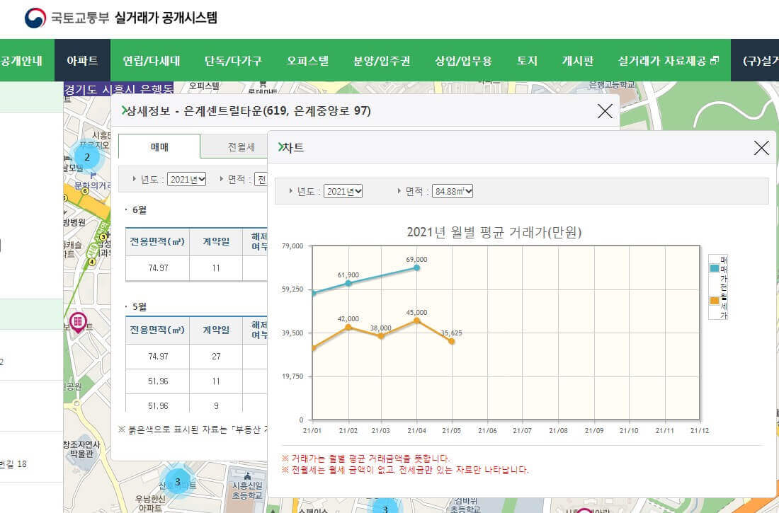 국토교통부 부동산 실거래가 조회 사이트는 매매 후 30일 이내에 신고하기 때문에 시세에 차이가 있을 수 있습니다. 부동산을 구입하기 전에 주변 시세를 먼저 확인하고 금전적인 피해를 입지 않도록 미히 확인하시기 바랍니다.