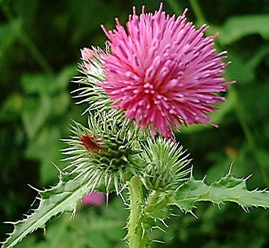 엉겅퀴는 전체가 털로 덮여 있는 여러해살이풀로 윗부분에서 약간의 가지를 치며 곧게 자라 큰 것은 1m 정도에 달하며, 잎의 가장자리에는 크고 작은 가시가 있습니다. 꽃의 색깔은 자주색, 적색을 띠며 여름에 가지 끝에 한송이가 하늘을 향해 핍니다. 어린잎은 나물로 하고 전체를 말려서 약용으로 사용합니다.