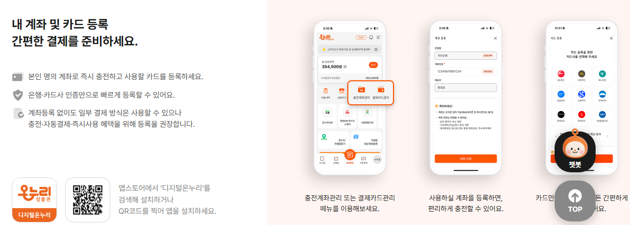 카드형 온누리상품권을 사용하려면 먼저 디지털온누리 앱을 설치해야 합니다. 앱 설치 후 회원가입을 완료해야 충전 및 결제가 가능합니다.