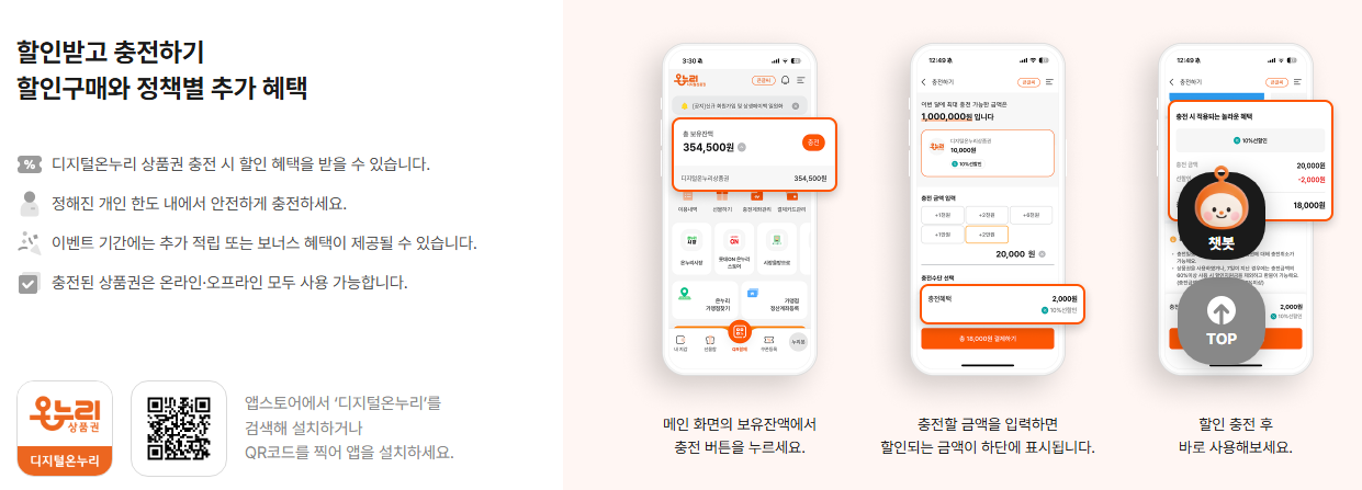 온누리상품권은 충전 시 할인 혜택을 받을 수 있습니다. 정책 및 이벤트 기간에 따라 추가 혜택이 제공될 수 있습니다.