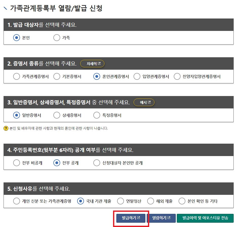 5. 혼인관계증명서 발급하기