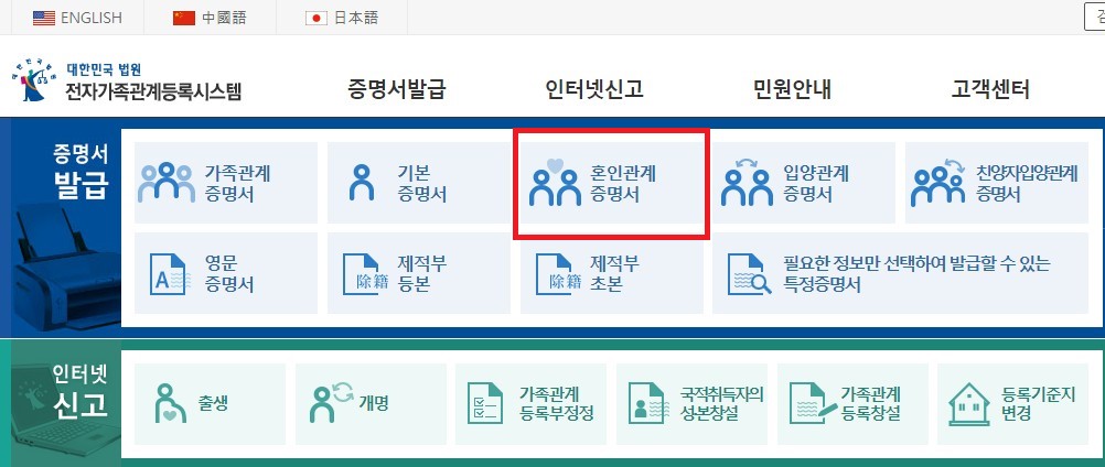 2. 혼인관계증명서 인터넷발급
