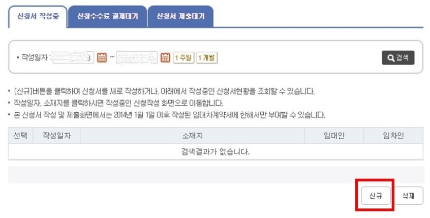 작성일자를 기입하고 신규 버튼을 선택합니다.