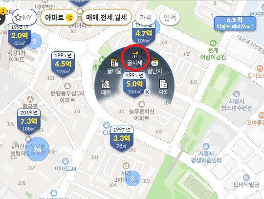 원하시는 지역을 선택하여 검색하거나, 특정 아파트 이름이나 학교 등을 지정하여 검색할 수 있습니다.