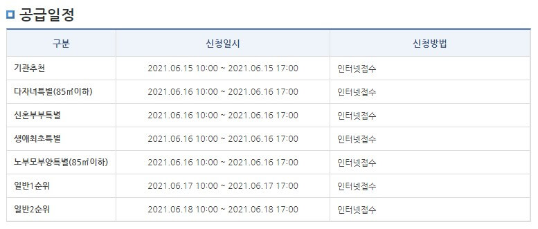 공급일정은 신청일시와 신청방법에 대한 정보를 제공하고 있으며, 분양정보를 확인하시려면 LH청약센터 홈페이지를 참고해주세요.