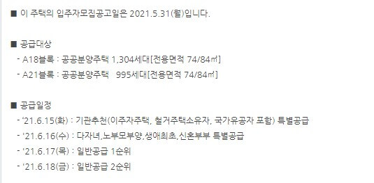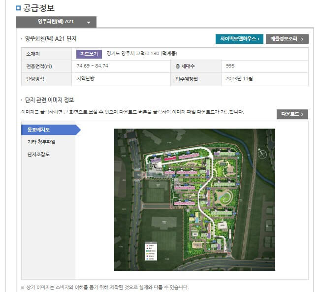 공고명을 클릭하면 공고개요, 공급정보, 공급일정 등의 세부 정보를 확인할 수 있습니다. 공고개요에서는 입주자모집 공고일과 공급대상, 공급일정 등을 자세히 파악할 수 있습니다.