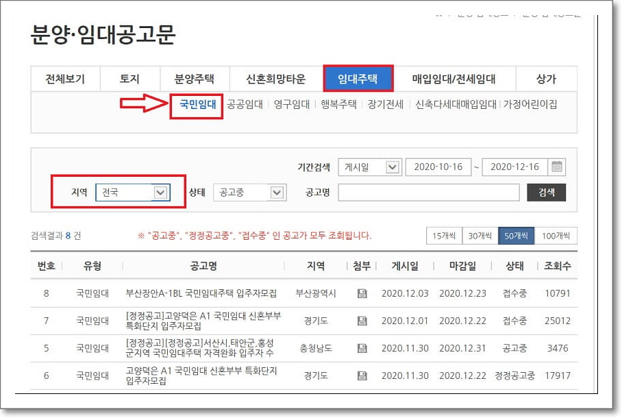 lh국민임대아파트 모집공고 확인 방법