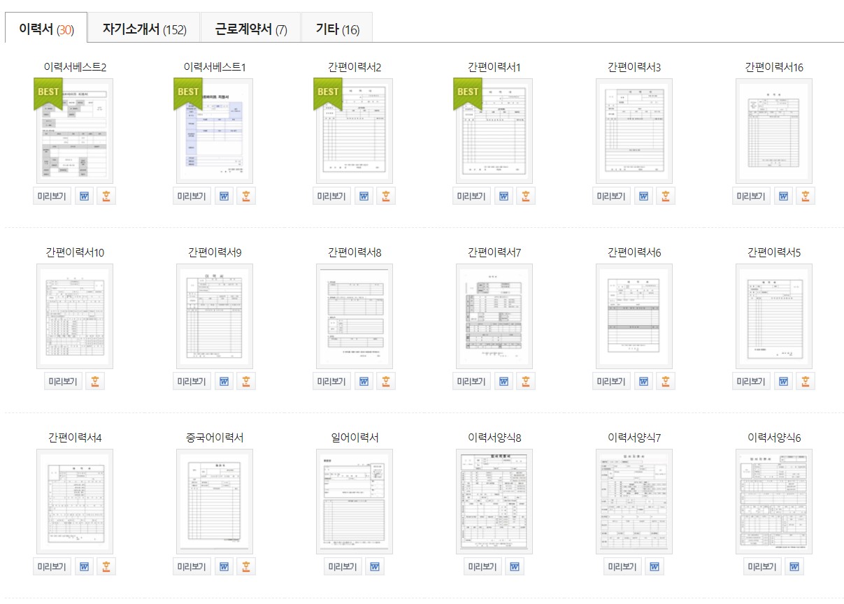 사람이 사이트는 회원가입을 하시면 무료로 다운로드 받을 수 있는 양식이 무료 50건이 됩니다. 사람인에서는 이력서 양식을 무료로 다운로드 가능합니다.